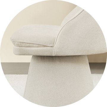 The layered seat cushioning that invites you to sit, paired with gently contoured arms that echo its sculpted elegance.