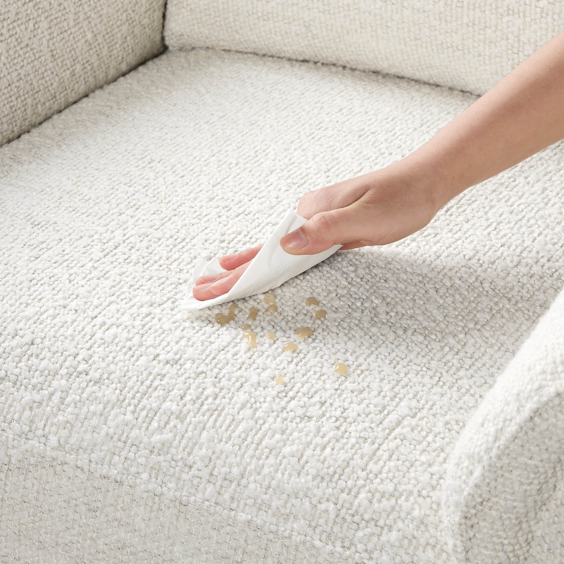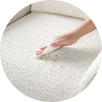 For Boucle: Blot and spot clean immediately with upholstery shampoo, foam from a mild detergent, or mild dry cleaning solvent (Cleaning Code: WS).