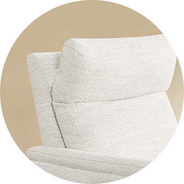 The Lulla recliner features a Leggett & Platt metal frame, allowing you to raise the footrest before reclining the backrest. With the footrest fully extended and the backrest slightly reclined to 120°, you can enjoy the perfect TV posture while staying close to your baby.