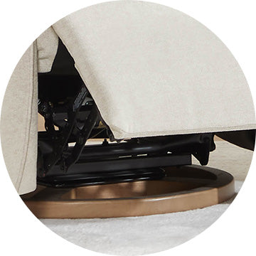 Equipped with a Leggett & Platt metal frame, the Vinca nursery recliner lets you elevate the footrest before reclining the backrest, creating the ideal position for nursing, cozy snuggles, or quiet moments just for you.