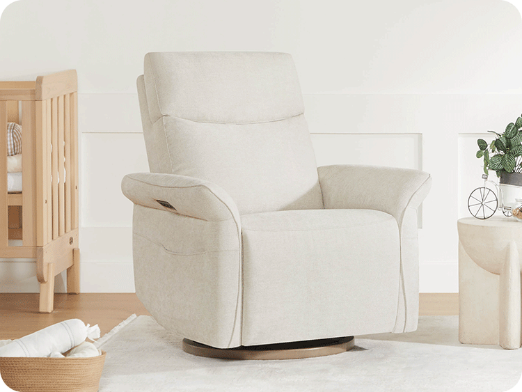 Vinca Power Swivel Nursery Glider Recliner with Power Lumbar & Headrest