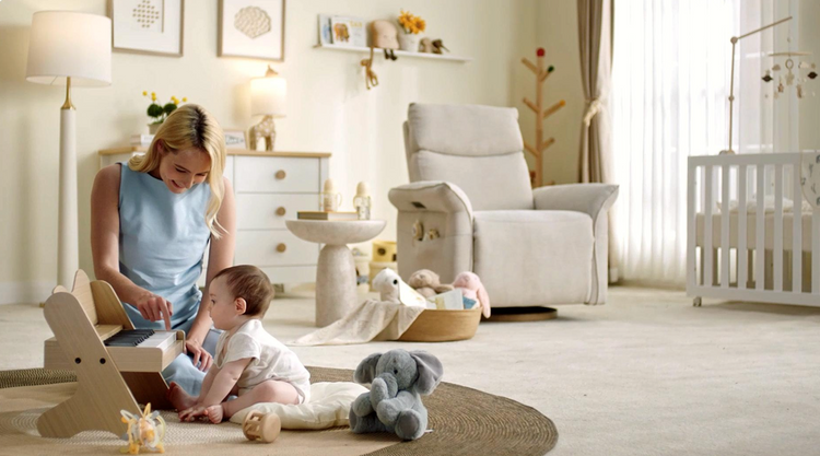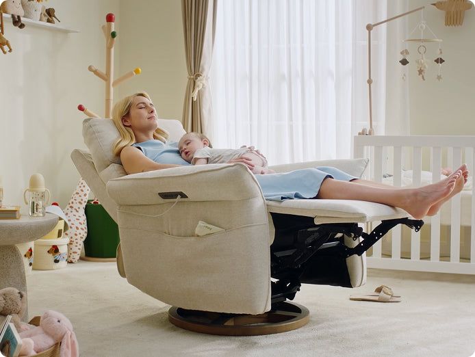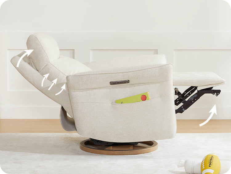 The premium Triple-Motor nursery recliner lets you independently adjust the power headrest and lumbar support for personalized comfort, helping you find your perfect position—whether you’re nursing, resting, or simply relaxing.
