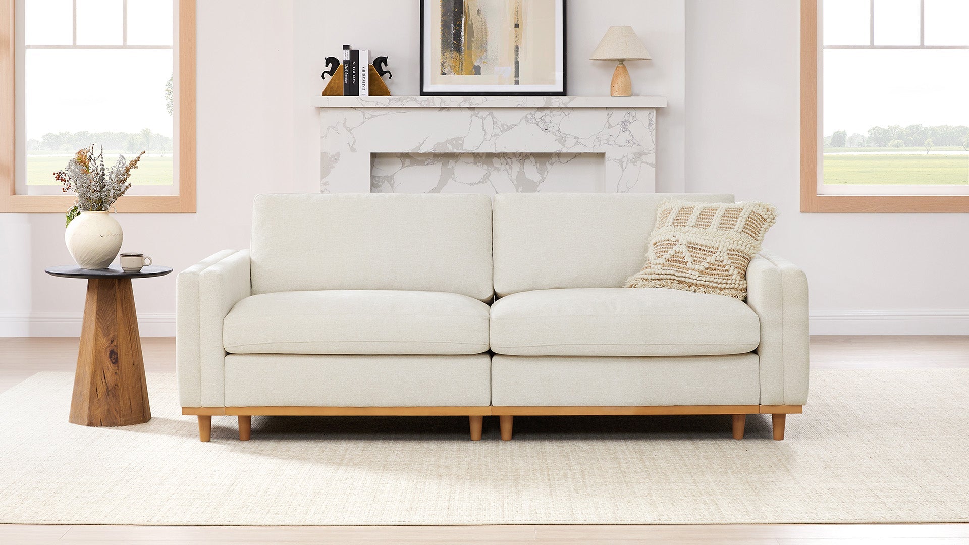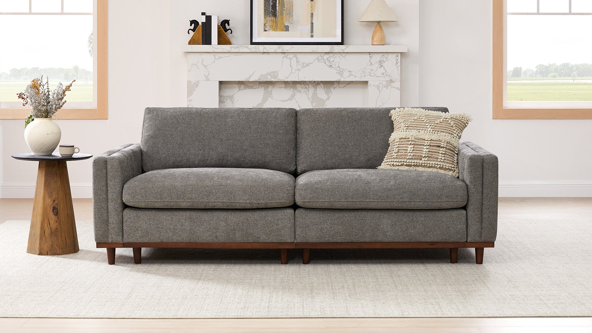 Kiln-dried, solid wood legs add durability and style while providing a high-leg design that allows for easy cleaning underneath, including access for robot vacuums.