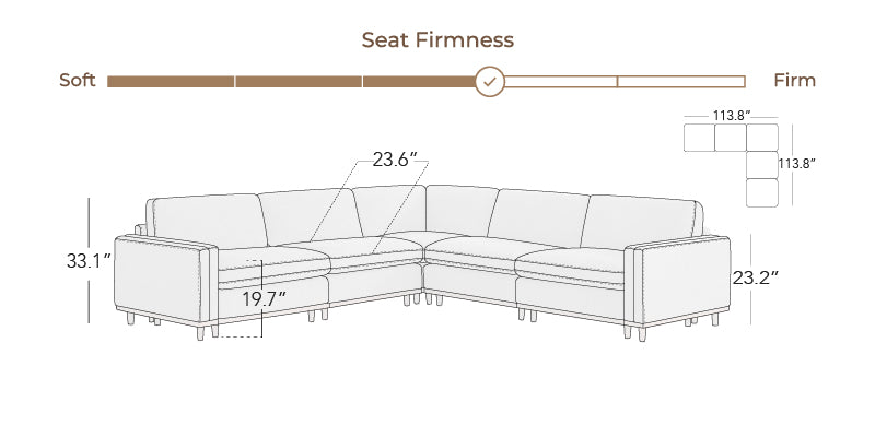 The Liam Modular Sofa stands out with its unique style striking a balance between contemporary and classic, blending seamlessly into any decor. The generously-sized seat cushions offer more space than typical modular sofas, making it perfect for lounging or hosting guests.