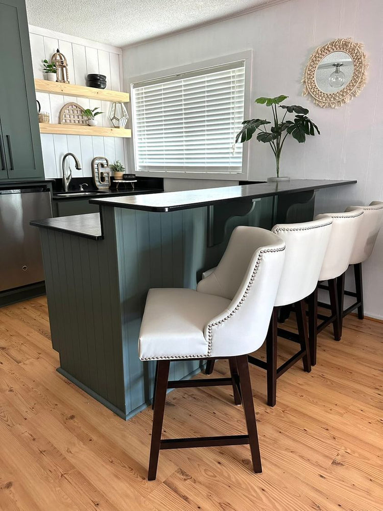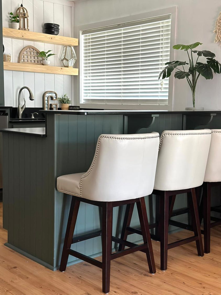 Avec sa gamme de couleurs, ses lignes courbes et ses élégants pieds en bois foncé, le tabouret de bar pivotant Asher est un ajout classique et élégant à tout comptoir ou îlot de cuisine. Doté d'un coussin moelleux et d'un dossier haut et incurvé, ce tabouret confortable et douillet est idéal pour les repas, les conversations nocturnes et tout le reste.