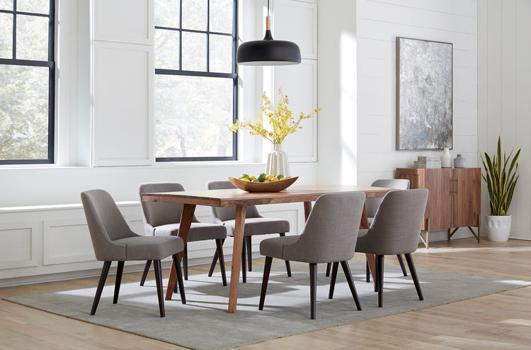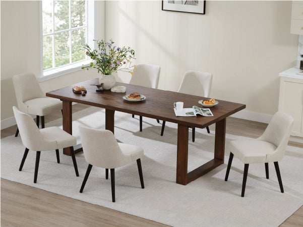 Enhance your dining experience with the Rhett Dining Chair, upholstered with a durable water-, oil-, and stain-resistant performance fabric. Designed for daily use and special occasions, this chair combines exceptional comfort with a stylish, versatile silhouette to make every meal memorable.