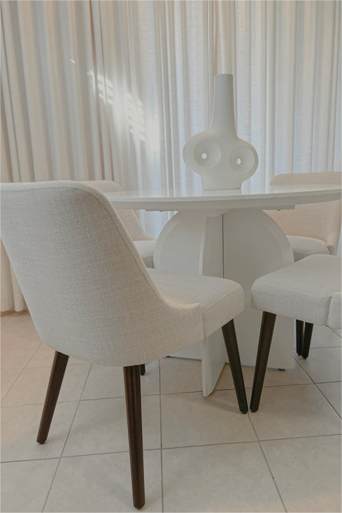 The Rhett dining chair embodies a modern ergonomic design with a barrel-curved back that naturally contours to your body, offering unparalleled comfort. Its minimalist aesthetic complements any home decor, promoting ease and relaxation in your daily dining.