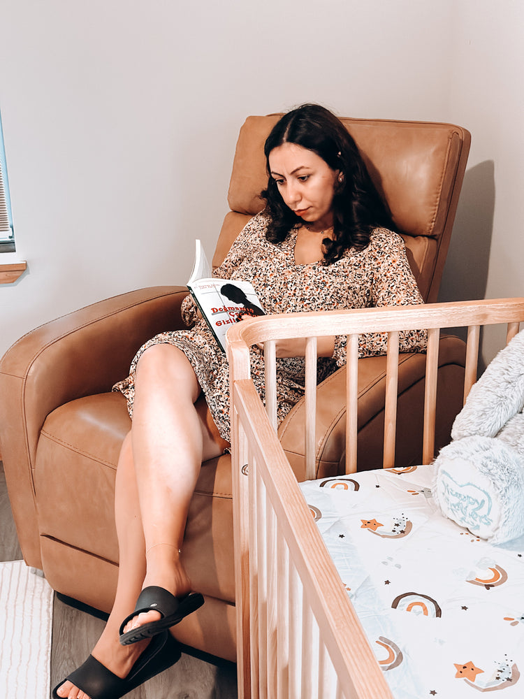 Wrapped in the softness of its faux leather or 100% polyester upholstery, Theo recliner provides a warm, inviting space to relax, feed, and bond with your little one in the tender moments of nursery life.