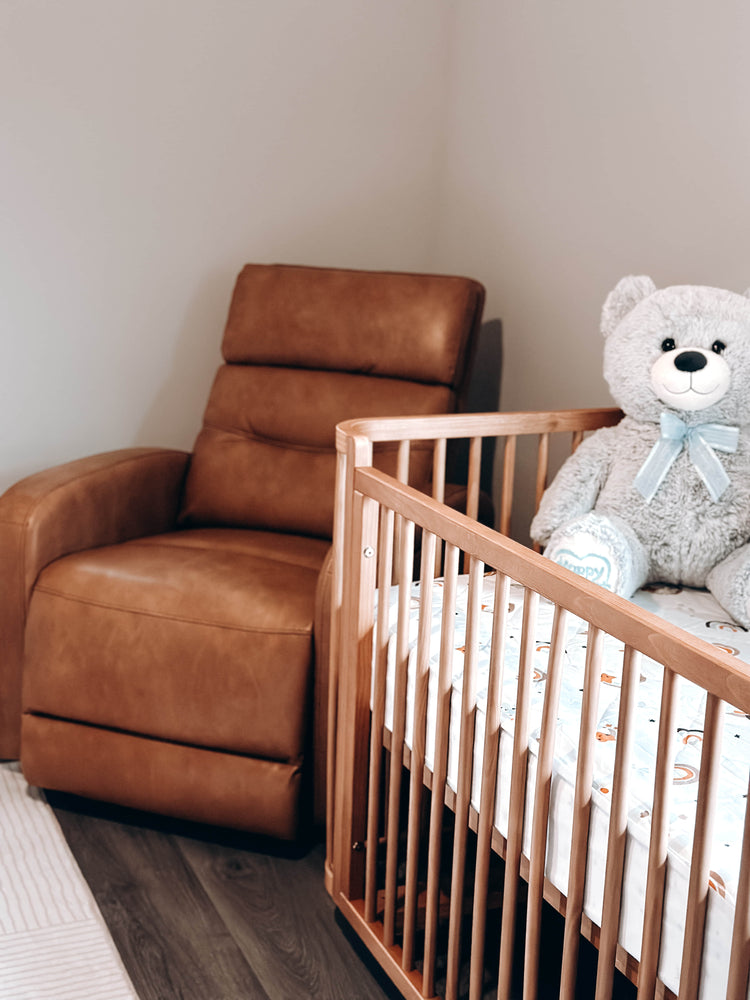Theo boasts a state-of-the-art Leggett & Platt mechanism, providing a seamless recline that adjusts to the needs of nurturing moments without effort.